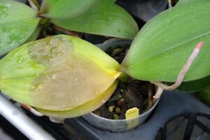 A vízhiány miatt az orchidea gyökerei összetömörödnek, kiszáradnak, így nem tudják többé ellátni a leveleket vízzel és tápanyagokkal, ami a azok sárgulását okozza. Az egészséges orchidea gyökerei zöldnek vagy világosszürkének tűnnek, teltek, ami azt jelzi, hogy képesek tárolni a földből felszívott nedvességet. Amíg a szárazságból fakadó stresszt kiheveri, érdemes gyakrabban vízzel permetezned a növényt.