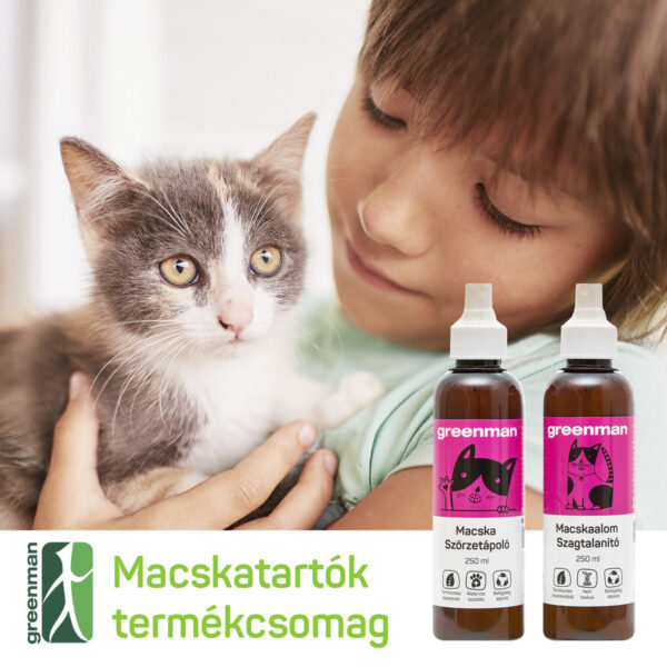 Mit tartalmaz: 1db 250ml-es Greenman Macska Szőrzetápoló és 1db 250ml-es Greenman Macskaalom Szagtalanító.