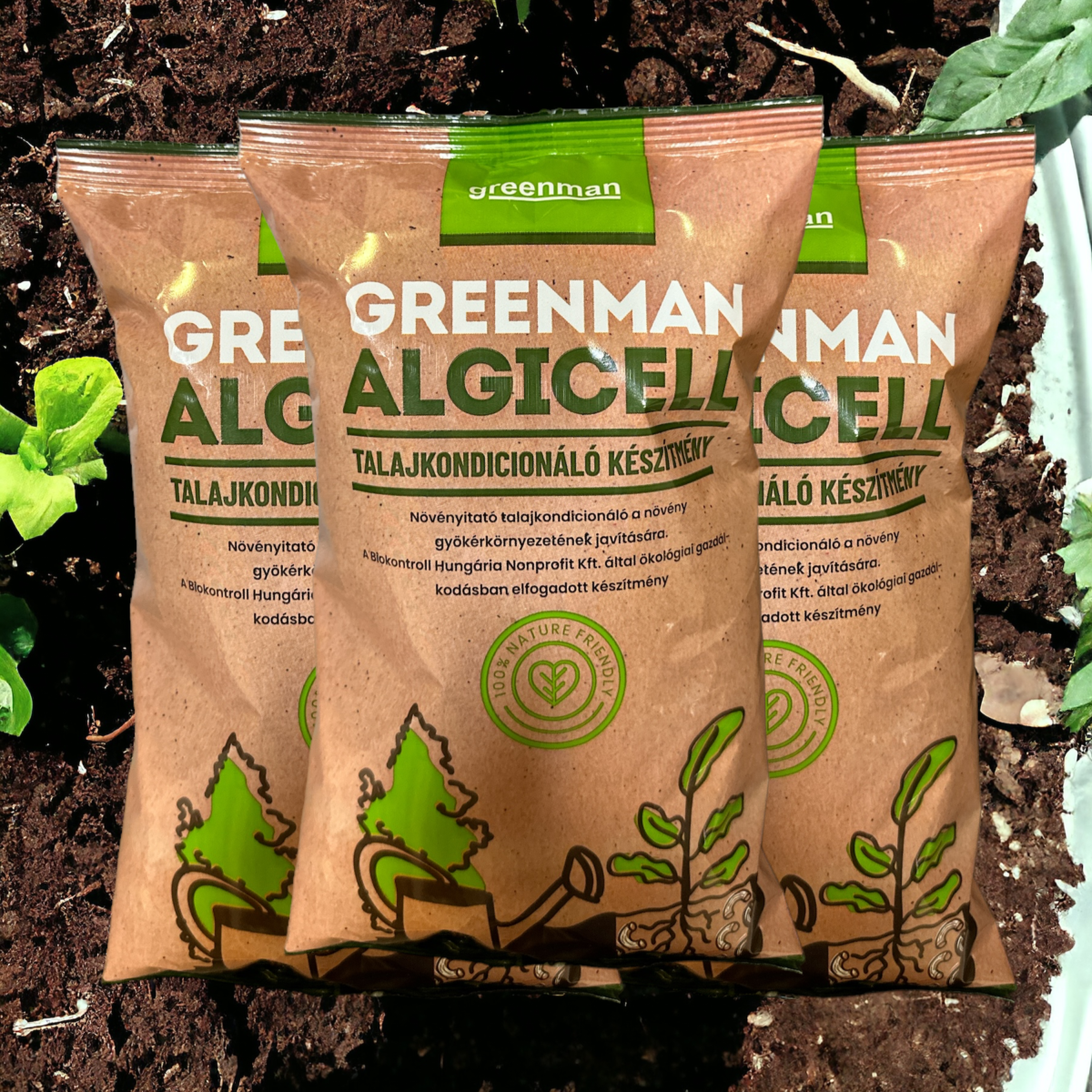 Továbbá a Greenman AlgiCell csövecskék a talajban feloldódás során rendkívül gazdag élőhelyet teremtenek a jótékony mikroorganizmusok számára, kiváltképp a Greenman Agro készítménnyel együttesen alkalmazva, mely erősíti a Greenman AlgiCell hatását. A Greenman AlgiCell hatására a laza, szellős szerkezetben a növény gyökérrendszere körülveszi ezt az “élőhelyet”, és a baktériumok és gombák hasznos tevékenysége révén a nehezen felszívható makro- és mikroelemek is elérhetővé válnak a növények számára. További előnye, hogy a csövecskék több éven keresztül biztosítják a morzsalékos, laza szerkezetet.