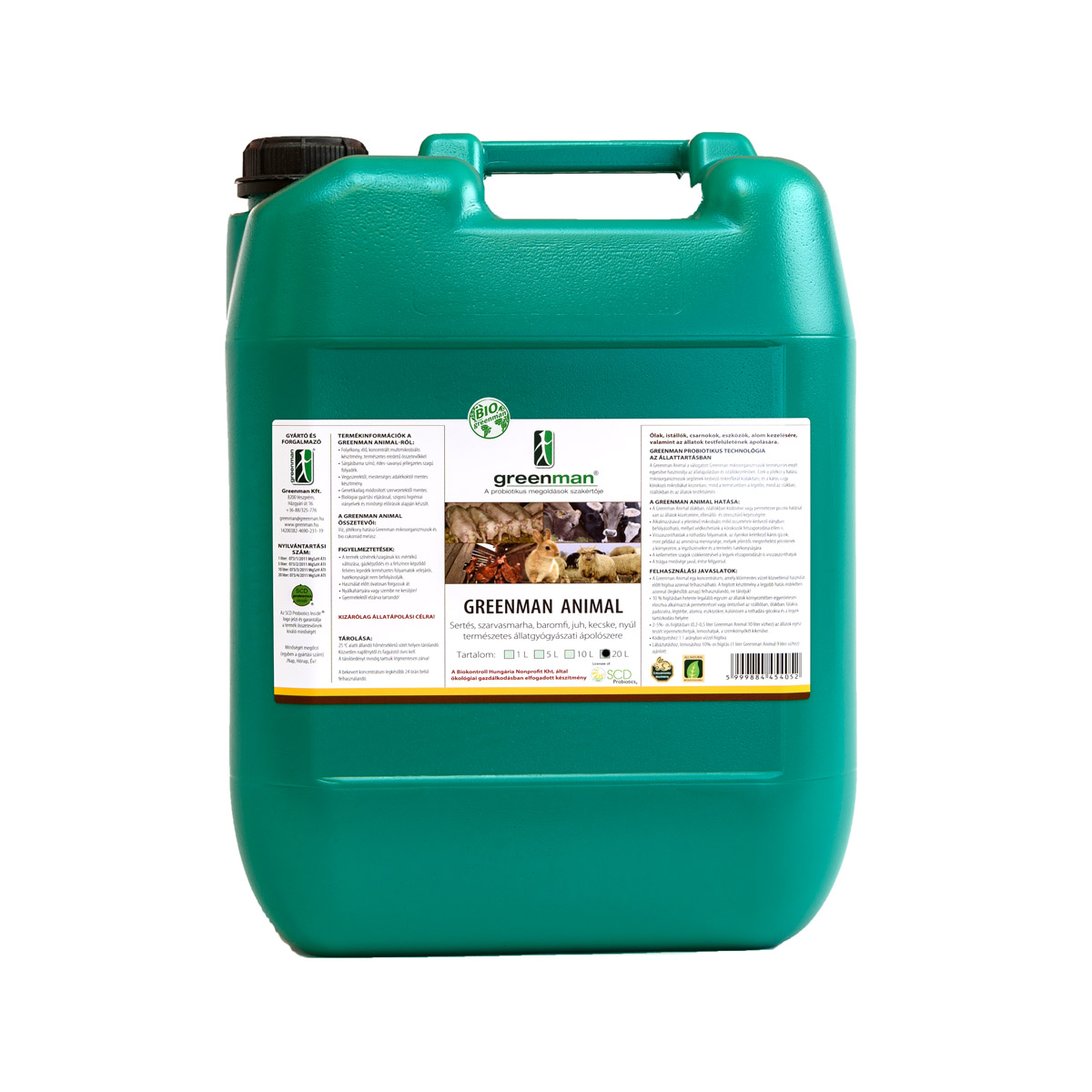 - Lábáztatáshoz, lemosásához 10%-os hígítás (1 liter Greenman Animal 9 liter vízhez) ajánlott.