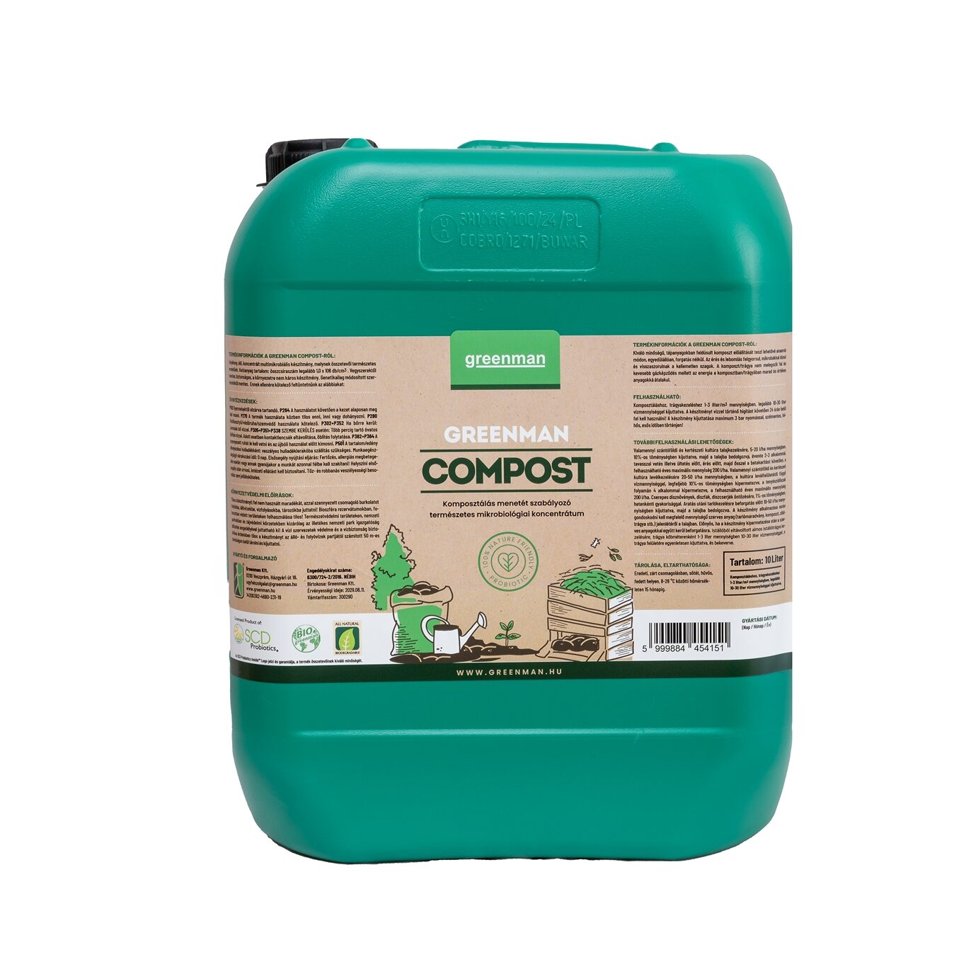 A különleges Greenman Probiotikus technológiát már a világ számos pontján sikerrel alkalmazzák, ez egy olyan biológiai eljáráson alapul, amely a természetben is előforduló baktériumok és gombák kombinációját használja, így nemcsak költséghatékony, de környezetkímélő megoldást is nyújt: a rothadási folyamatokat erjesztés váltja fel, megakadályozza a kellemetlen gázok és toxinok képződését, segíti a kedvező mikroflóra kialakulását, kiszorítva a patogén mikrobákat, miközben akár szennyező anyagokat is képes lebontani. Ez az innovatív oltóanyag nemcsak javítja a komposzt minőségét, hanem támogatja a környezettudatos és fenntartható kertészeti és mezőgazdasági gyakorlatokat is.