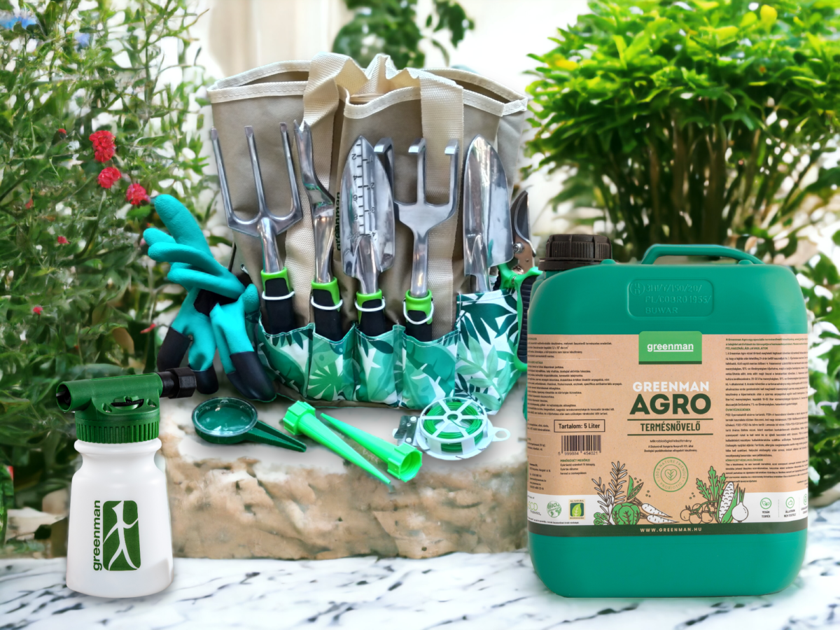 A csomag tartalma még sláger készítményünk, a termésnöveléshez elengedhetetlen 5 literes Greenman Agro. Ez a speciálisan kifejlesztett mikrobiológiai készítmény segíti a növényeidet egészségesen tartani és bőséges termést hozni.