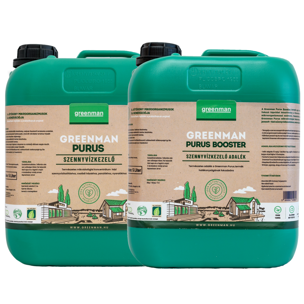 Ha már a baktériumok a helyükön vannak a Greenman Purusnak köszönhetően, kell valami ami tápanyagot biztosít a Greenman Purus mikroorganizmusai számára. Ezáltal a hirtelen változó, adott esetben akár kedvezőtlen, vegyszeres vagy rothadó közegbe kerülő baktériumok közvetlen tápanyaghoz jutva könnyebben megtelepszenek, szaporodásnak indulnak és megsokasodva lebontják a dugulást, szaghatást, problémát jelentő lerakódásokat, szilárd szerves frakciókat. A Greenman Purus Booster tehát egy biztosíték arra, hogy a legkülönfélébb közegben is minél több lebontó baktérium minél rövidebb idő alatt megkezdhesse az aktív munkát. Különösen fontos lehet a használata a szakaszosan használt épületeknél, mint például egy nyaraló vagy panzió, hiszen itt van a legnagyobb esély a szennyvíz tartalmának beszáradására, berothadására és az előzőleg meglévő hatékony baktérium közösség elpusztulására vagy összetételének megváltozására.